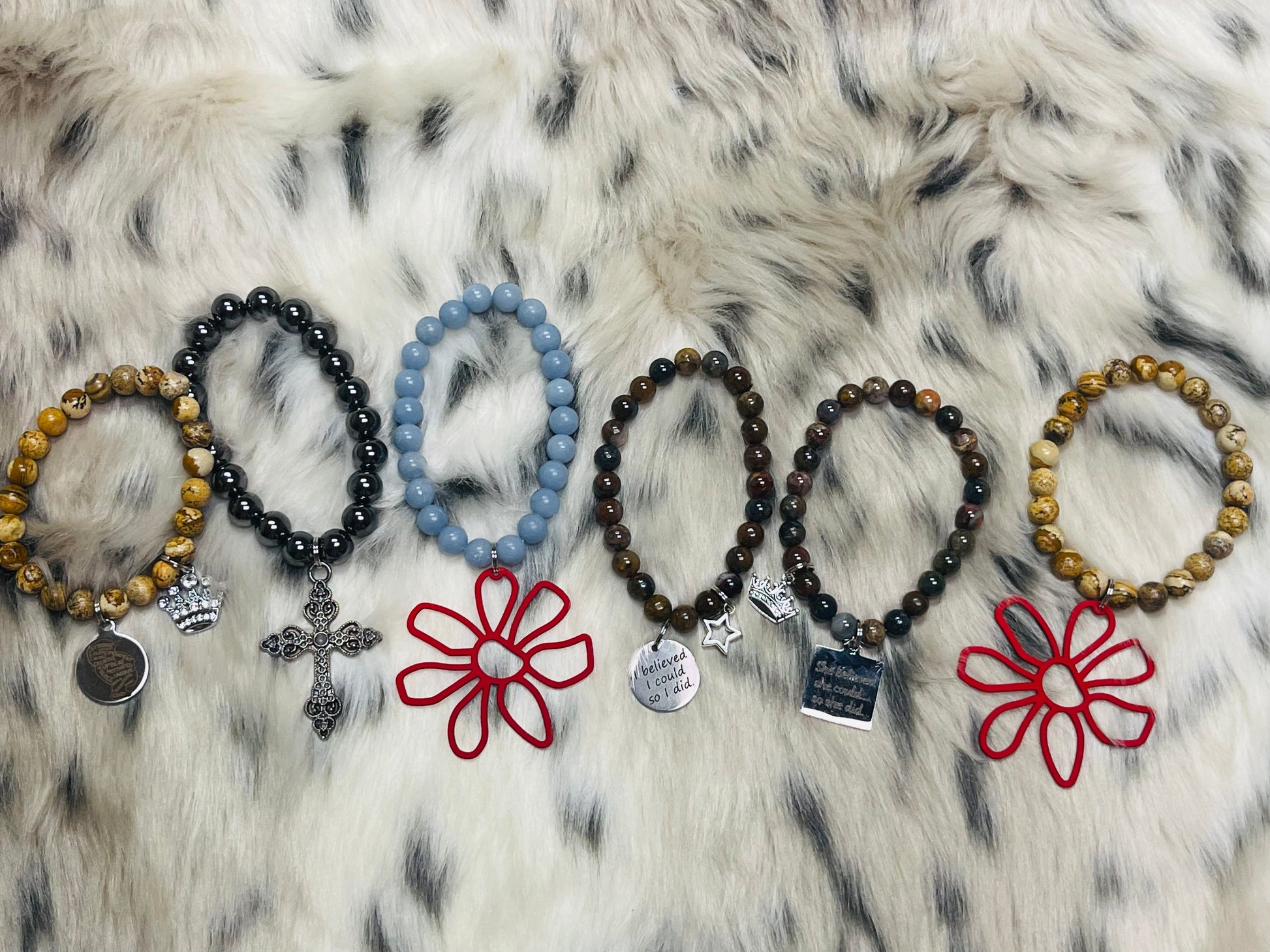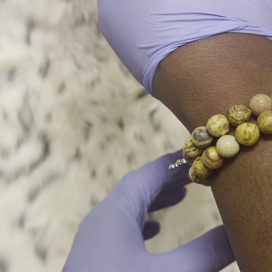 This Jasper beaded stretch bracelet is great for wearing alone or stacking with other beaded bracelets OR bangles.